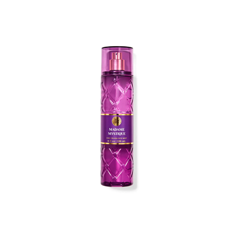 Madame Mystique de Bath & Body Works es una fragancia floral amaderada almizclada para mujer. Se trata de una fragancia nueva, lanzada en 2025. Su composición incluye pétalos de rosa y frutos rojos.