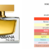 The One de Dolce&Gabbana es una fragancia de la familia olfativa Ámbar Floral para Mujeres. The One se lanzó en 2006. La Nariz detrás de esta fragrancia es Christine Nagel. Las Notas de Salida son durazno (melocotón), lichi, mandarina y bergamota; las Notas de Corazón son azucena, ciruela, jazmín y lirio de los valles (muguete); las Notas de Fondo son vainilla, ámbar, almizcle y vetiver.